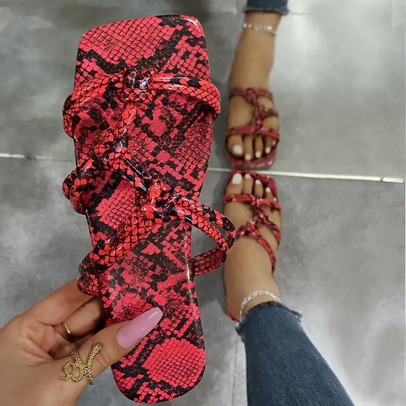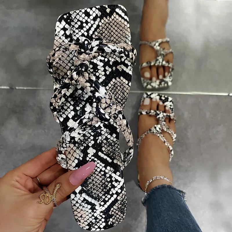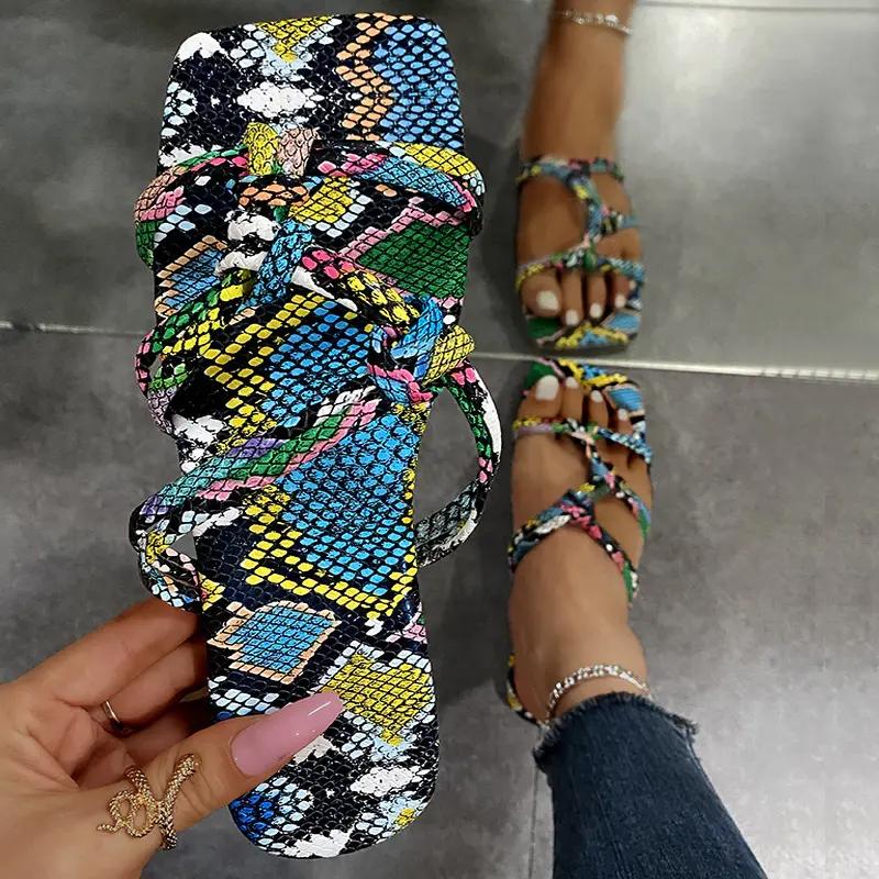 Women‘s Fashion Color Snake Print Flat Bottom Slippers
