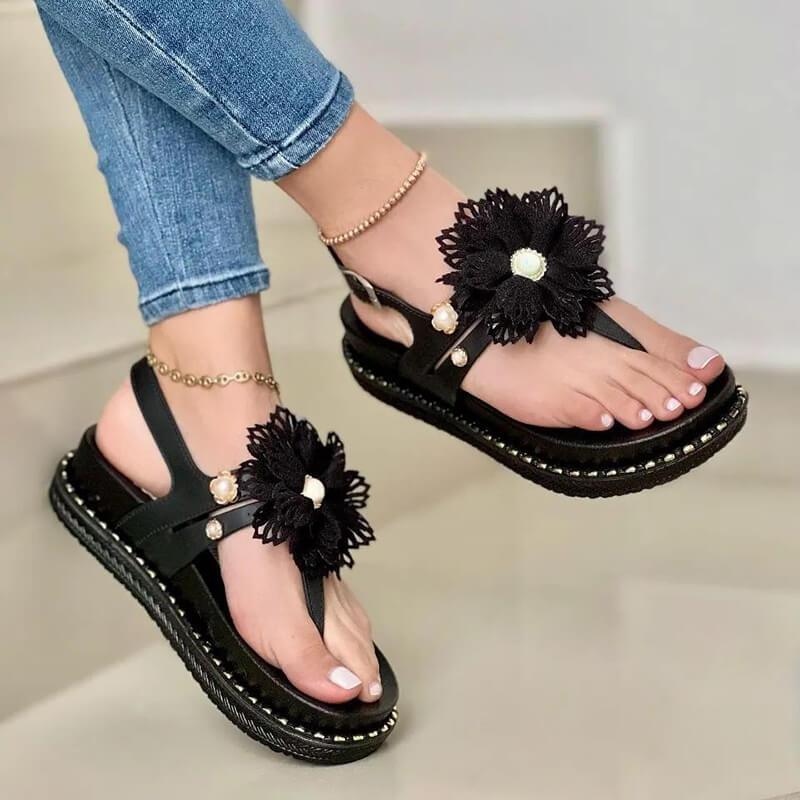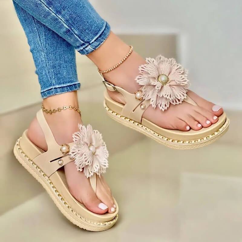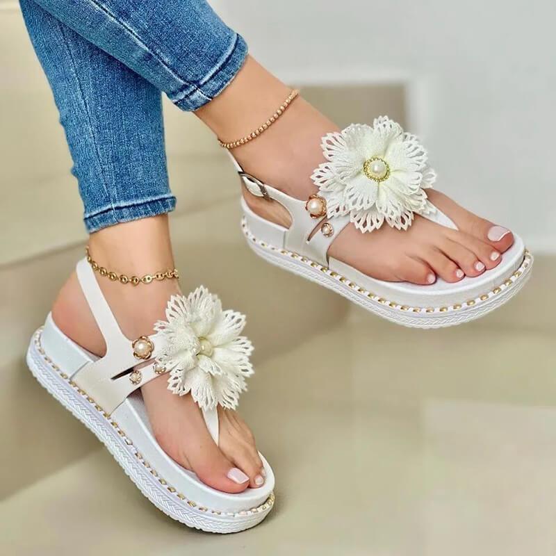 Women;s Fashion Flower Platform Flip Flops Sandals