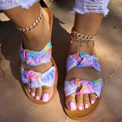 Women‘s Fashionable And Comfortable Plaid Print Velcro Sandals