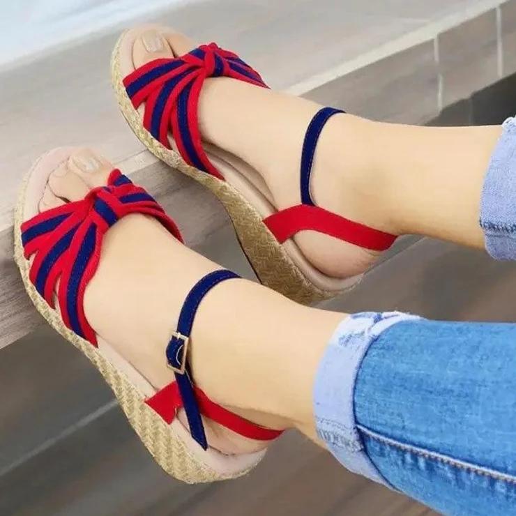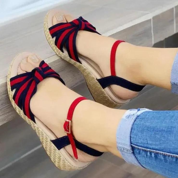 Women‘s Fashionable Bowknot Colorblock Woven Sole Sandals