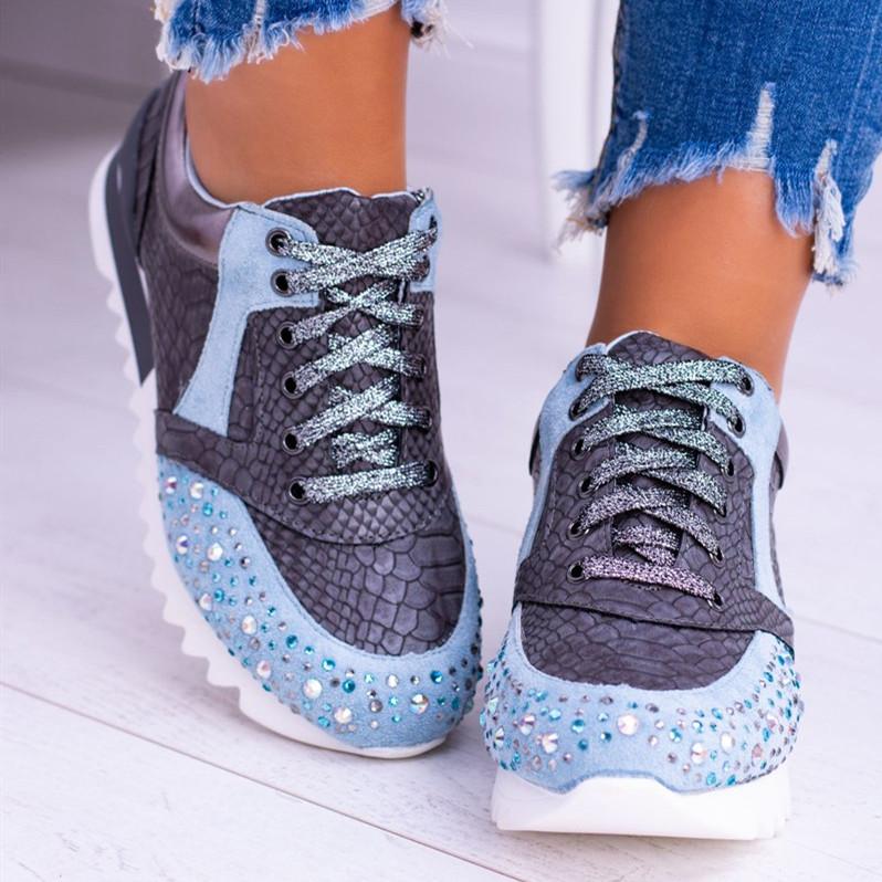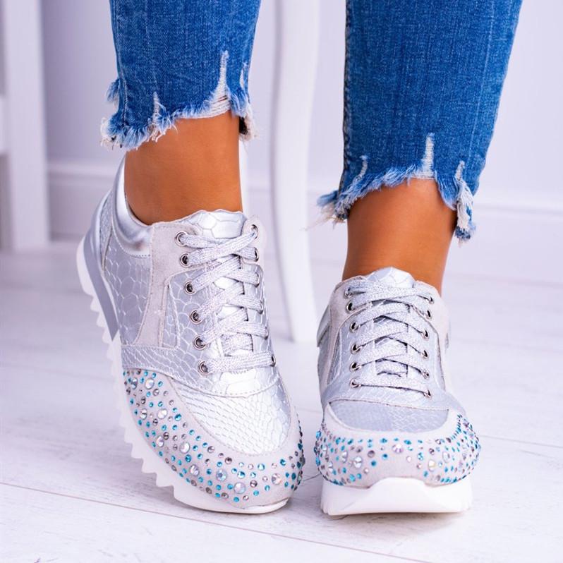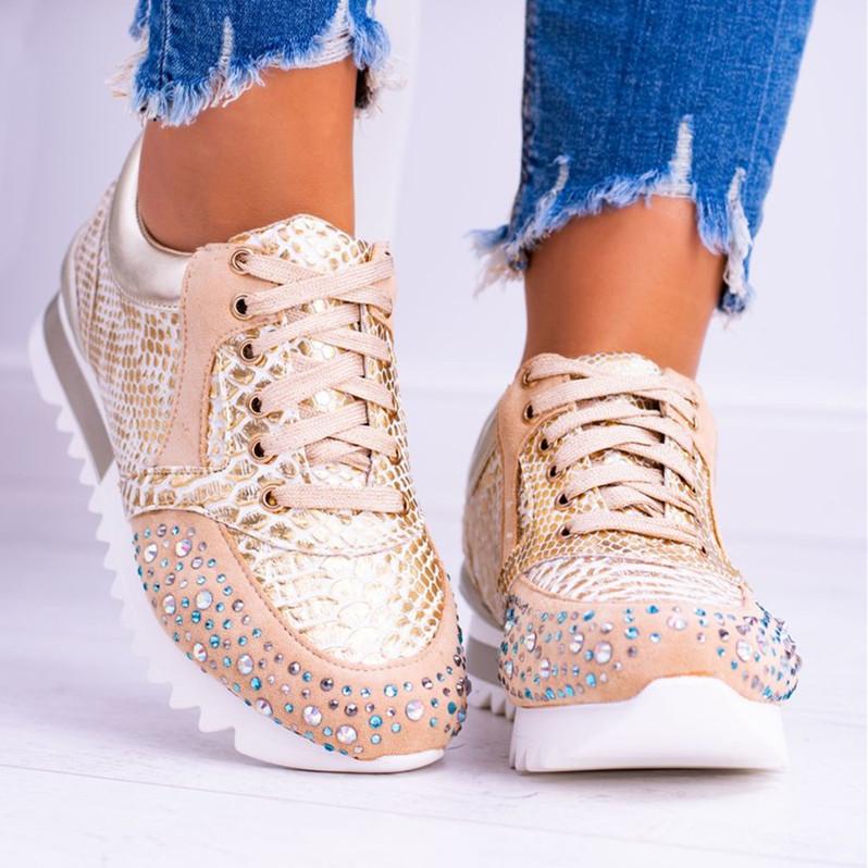 Classic Fashion Paillette Lace-Up Round Toes Sneakers