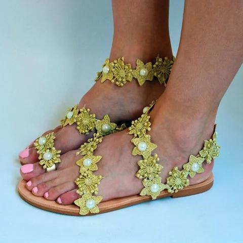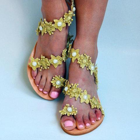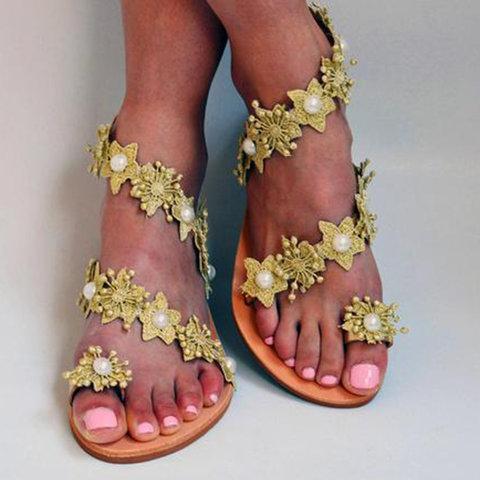 Women Slide Holiday Pu Flower Flat Heel Sandals