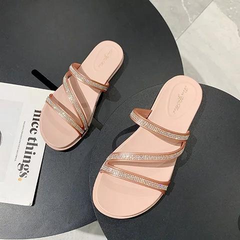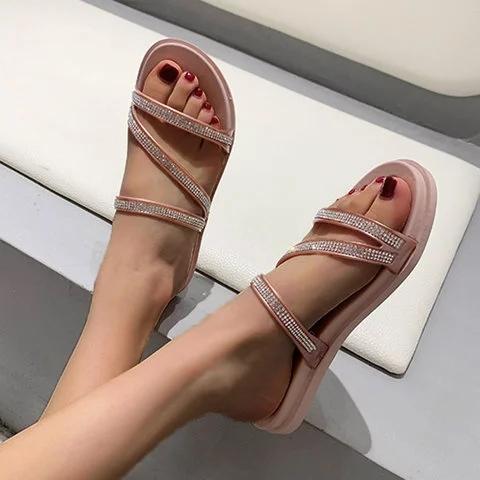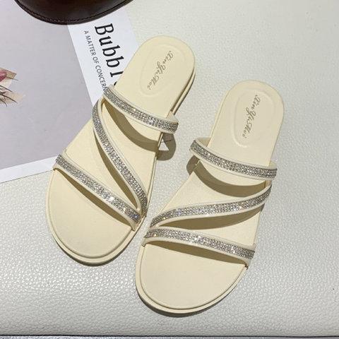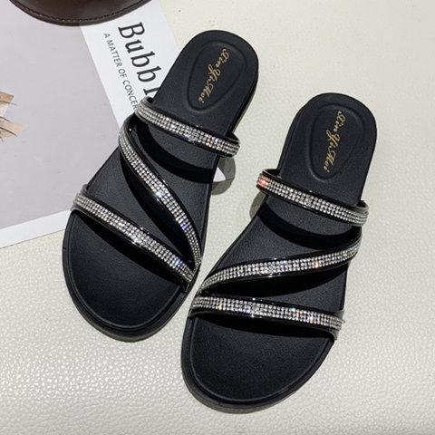 Women Slide PU Casual Rhinestone Sandals