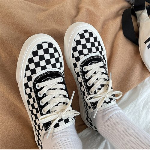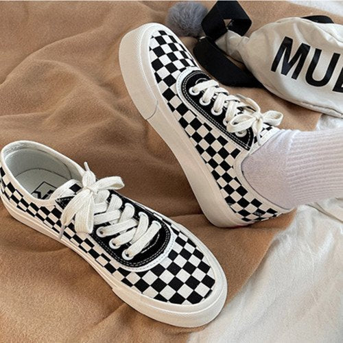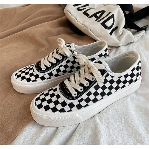 Women sneakers - autumn classic retro Korean casual lace checkerboard