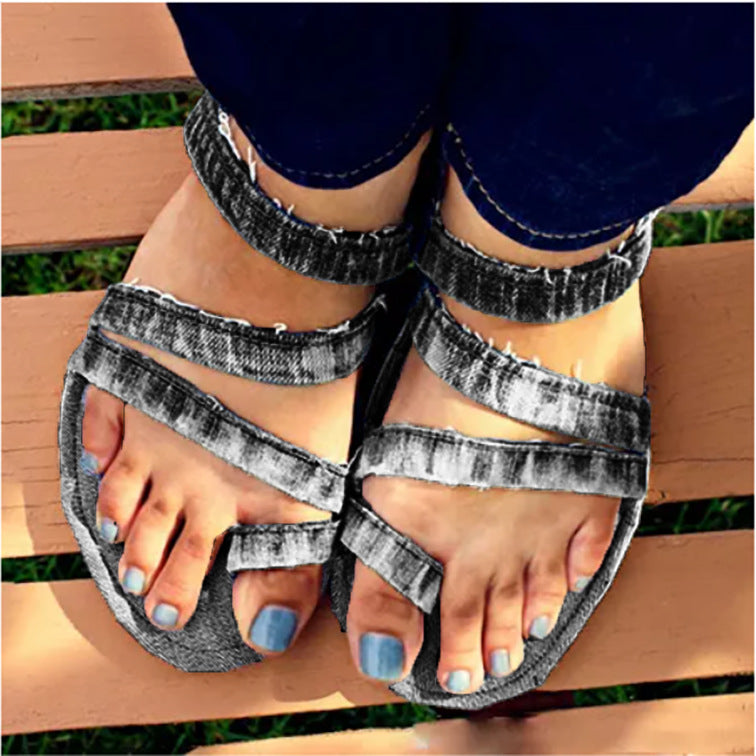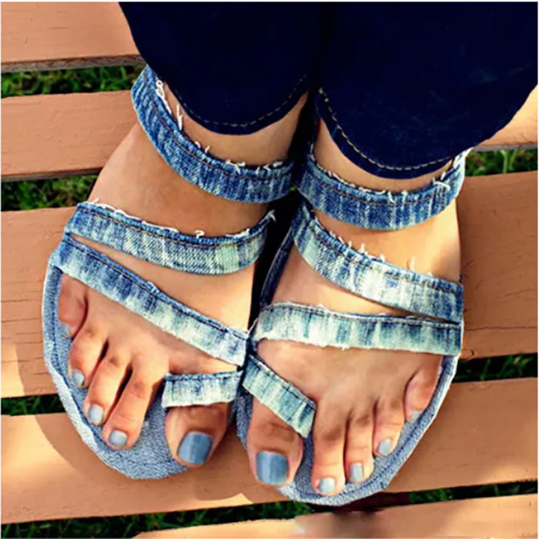 Women Summer Flat Heel Jean Sandals