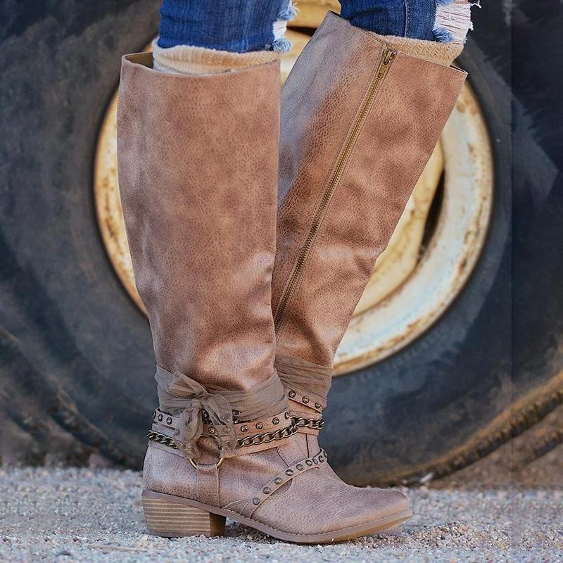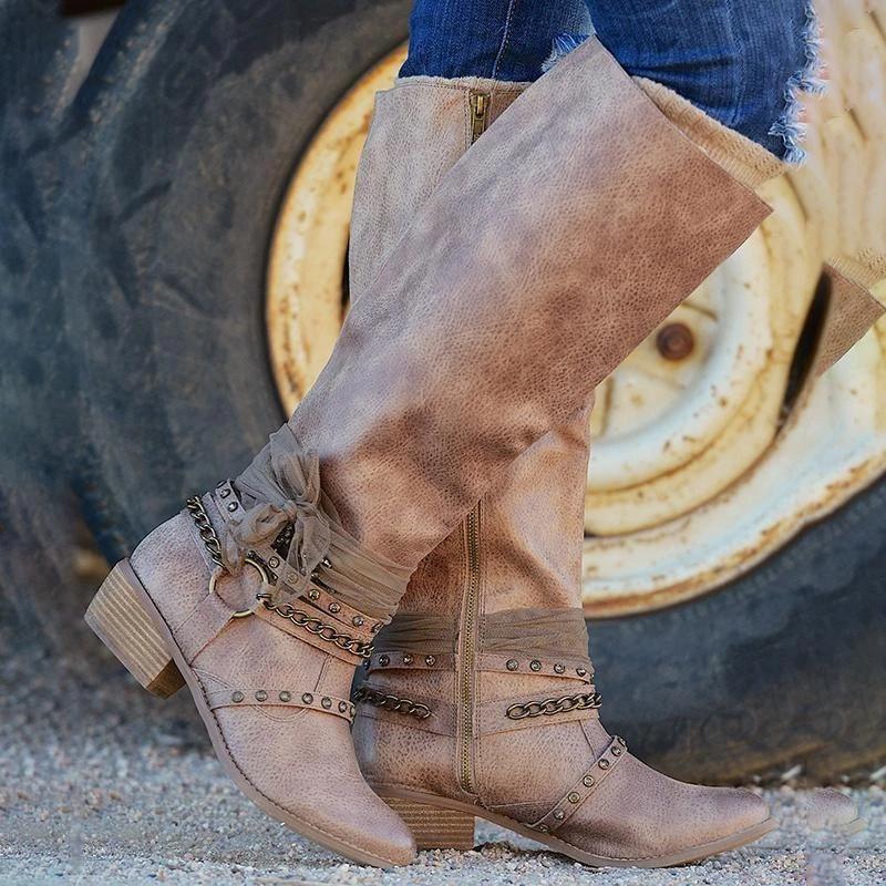 Women Vintage Booties Casual Zipper Boots