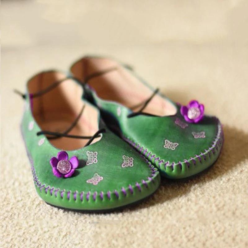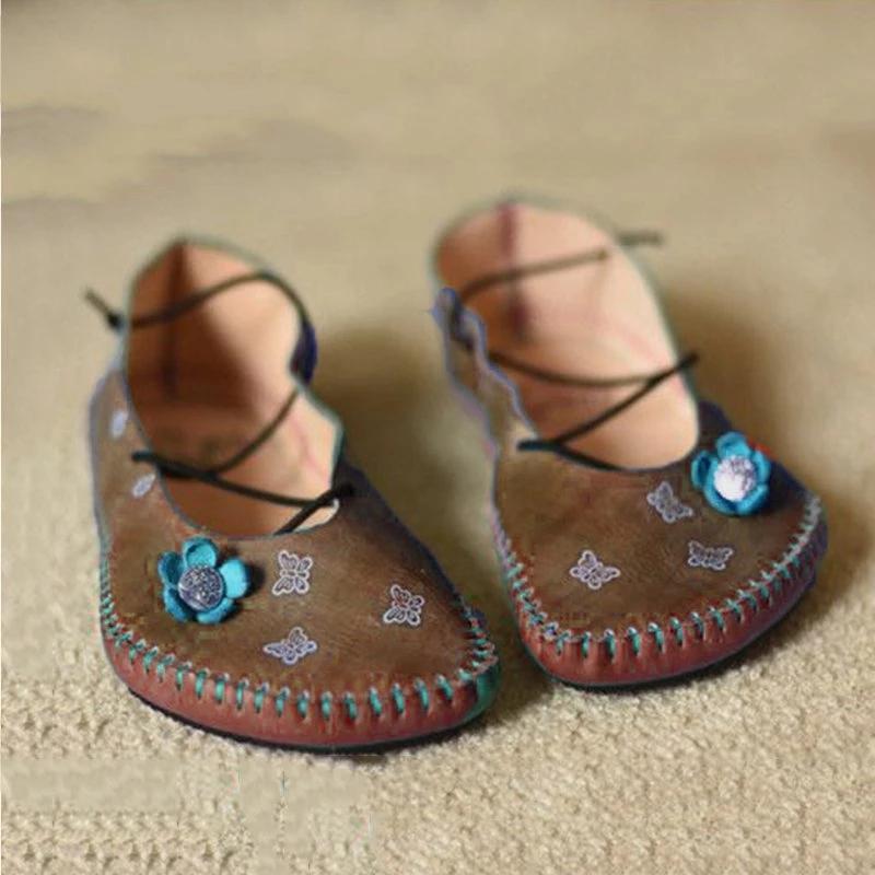 WOMEN VINTAGE FLAT HEEL FLOWER FLATS