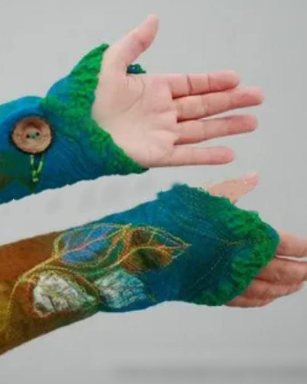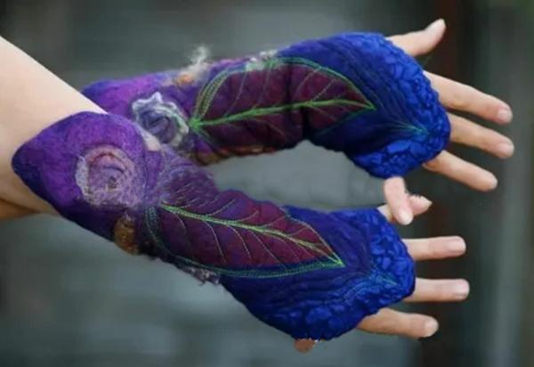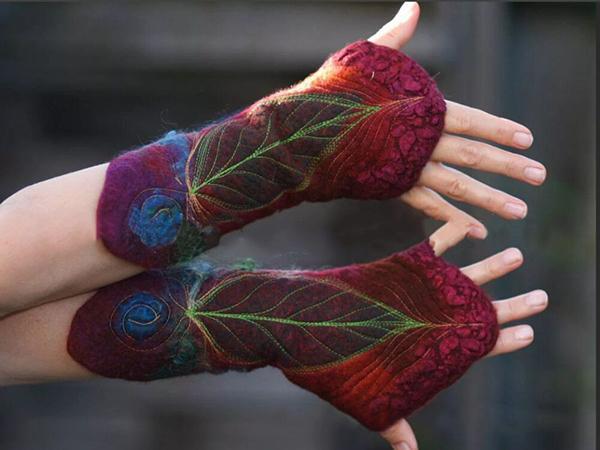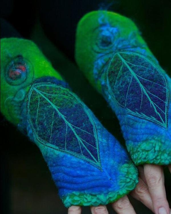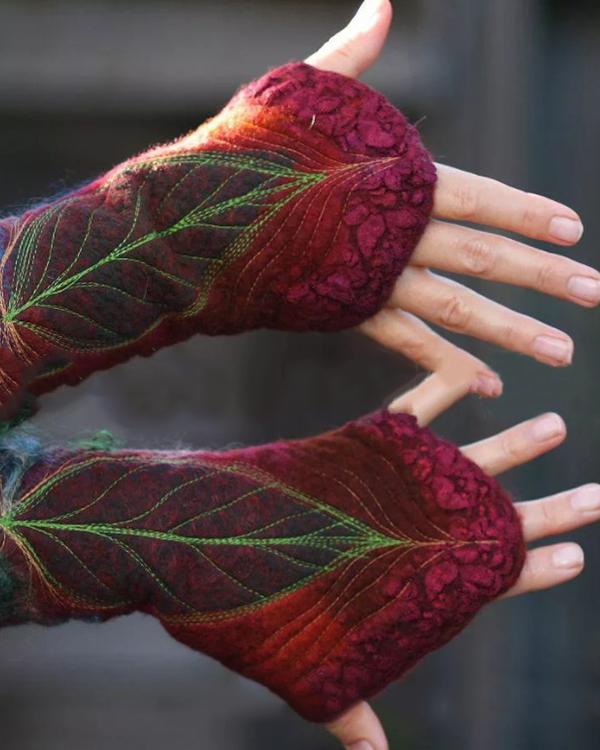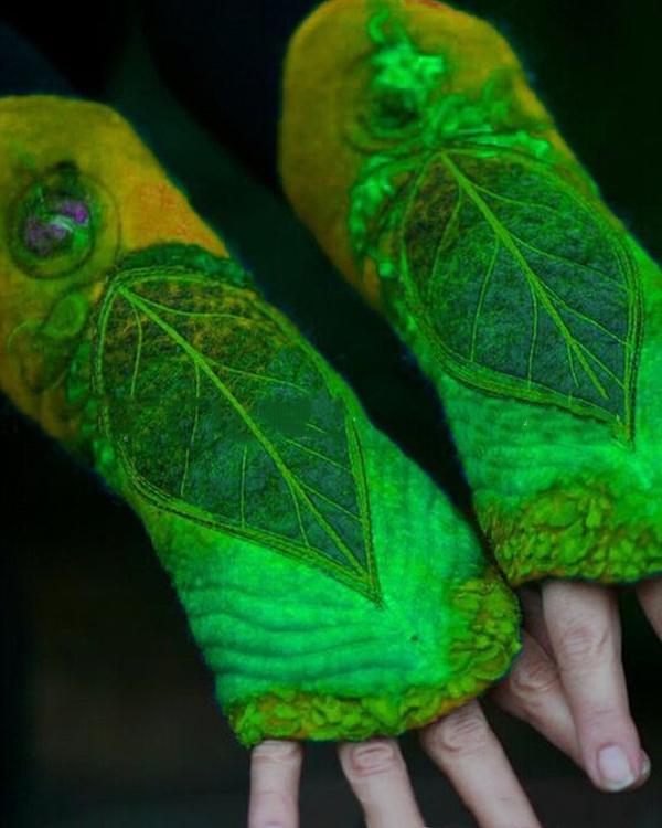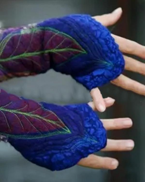 Women Vintage Printed Leaf Gloves