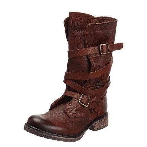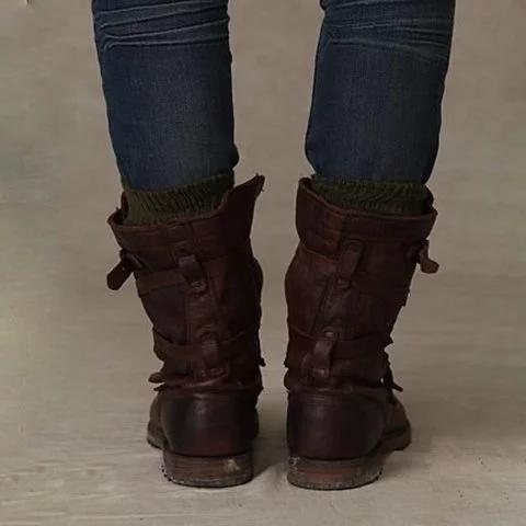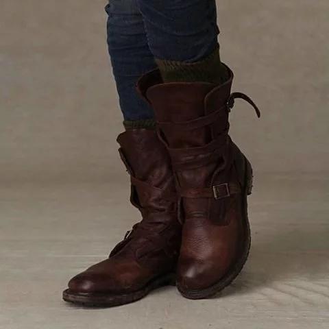 Women Vintage Riding Boots Casual Chic Buckle Boots