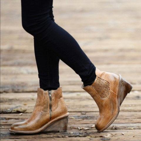 Women Vintage Wedge Boots Casual Chic Zipper Boots
