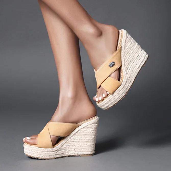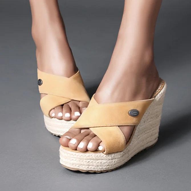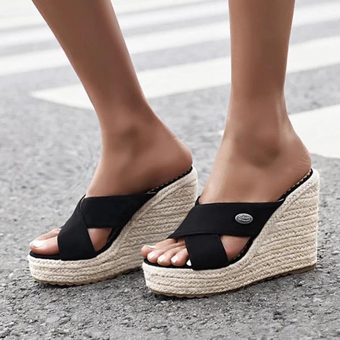 Women Wedge Heel Slip-On Open Toe Espadrille Sandals