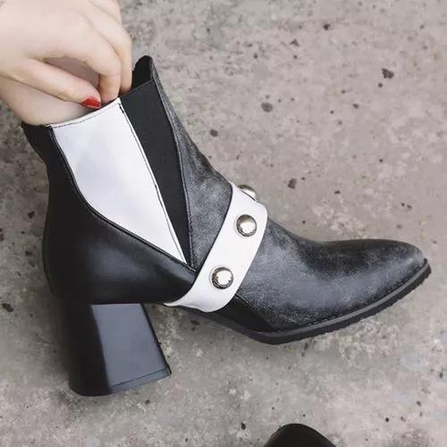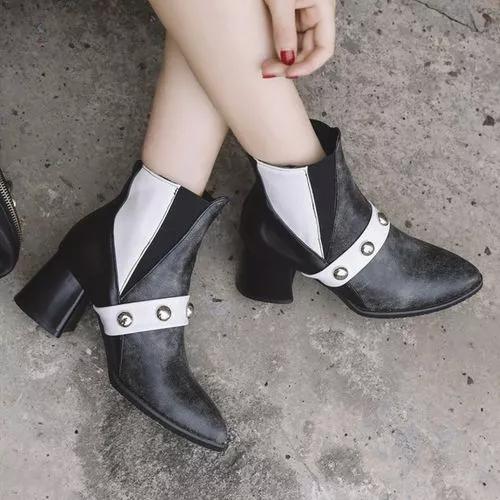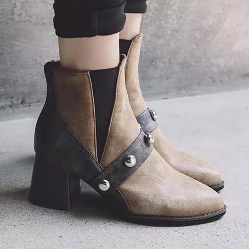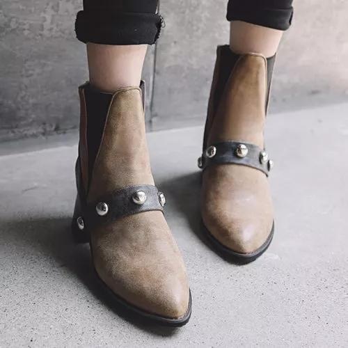Women's Beading Ankle Boots Pointed Toe Heels Leatherette Chunky Heel Boots