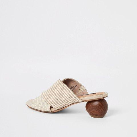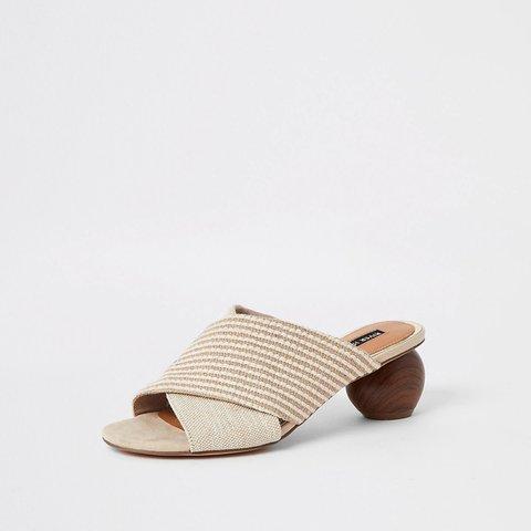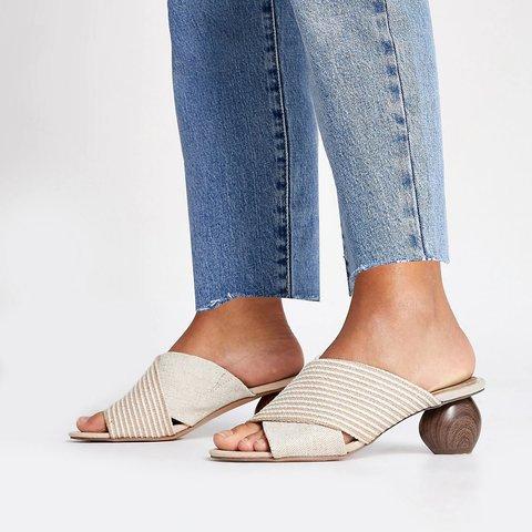 Women's Beige Block Heel Peep Toe Summer Slippers