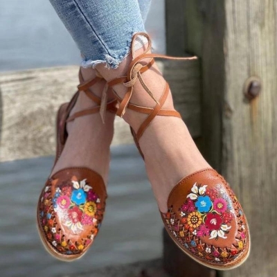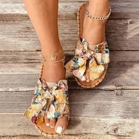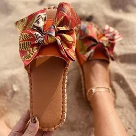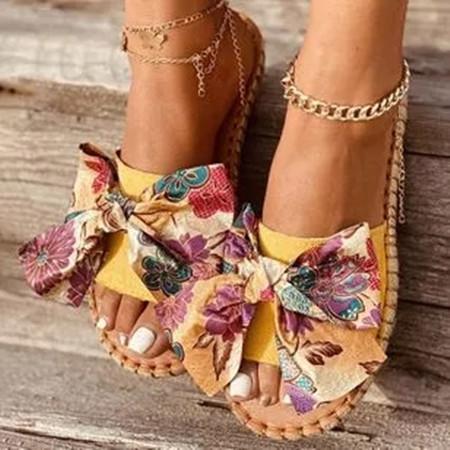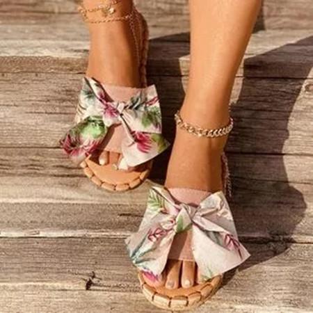 Women's Bowknot Flower Round Toe Cloth Flat Heel Slippers