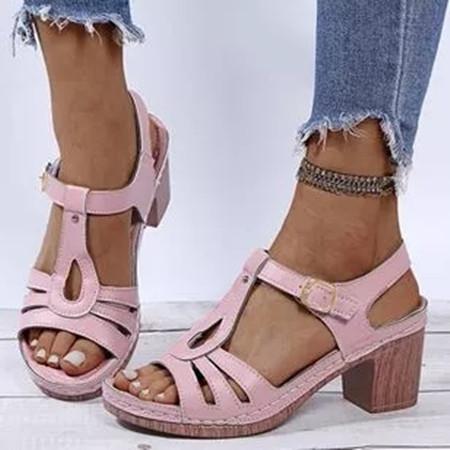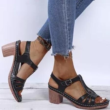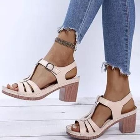 Women's Buckle Heels Nubuck Chunky Heel Sandals