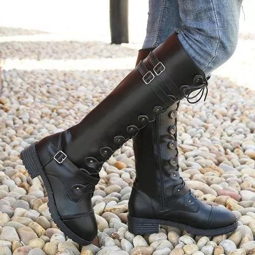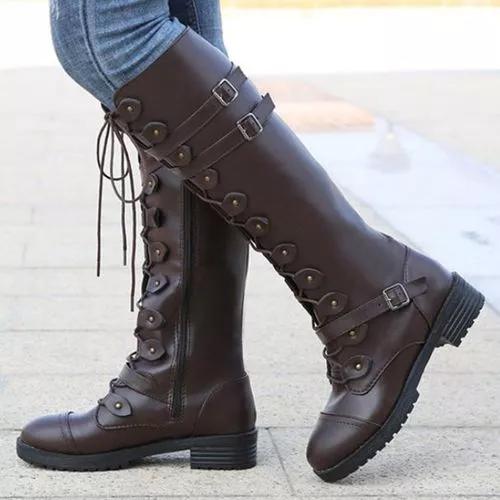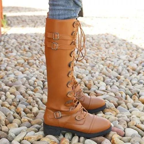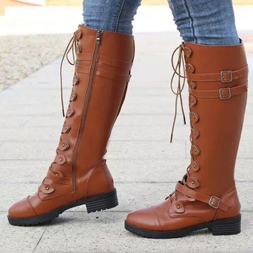 Women's Buckle Lace-up Mid-Calf Boots