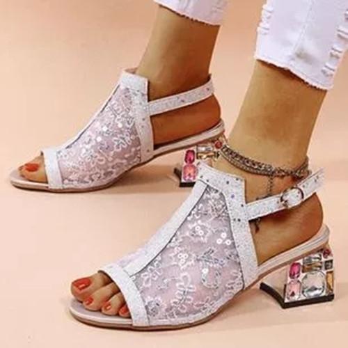 Women's Buckle Slingbacks Fabric Chunky Heel Sandals