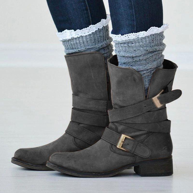 Women's Buckle Strap Artificial Leather Casual Boutique Boots