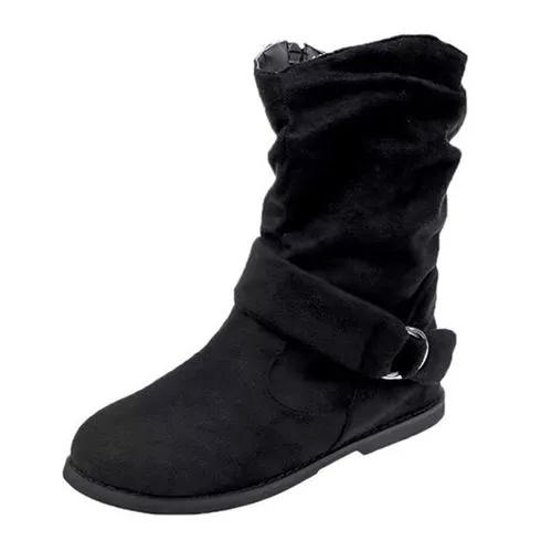 Women's Buckle Zipper Ankle Boots Closed Toe Flat Heel Boots