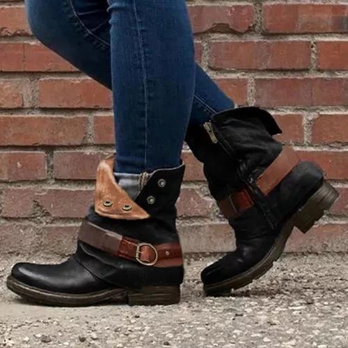 Women's Buckle Zipper Ankle Boots Low Heel Boots