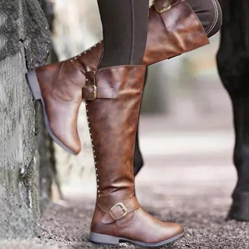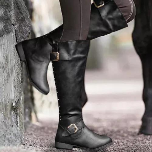 Women's Buckle Zipper Knee High Boots