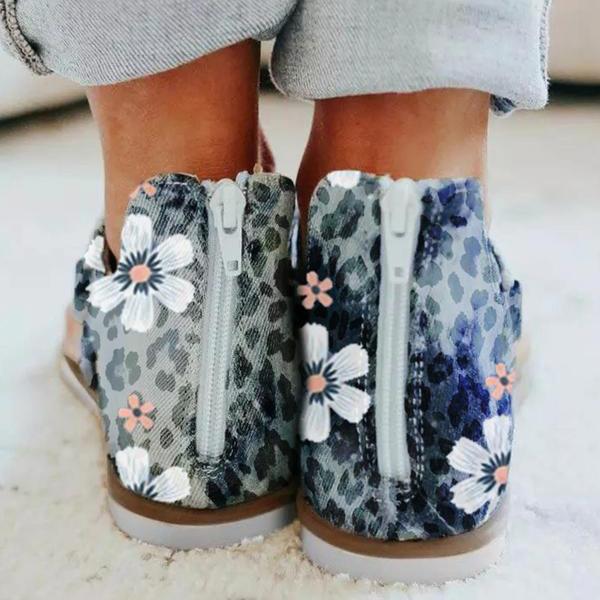 Women's Casual Small Orchid Zippered Flat Sandals