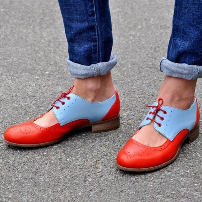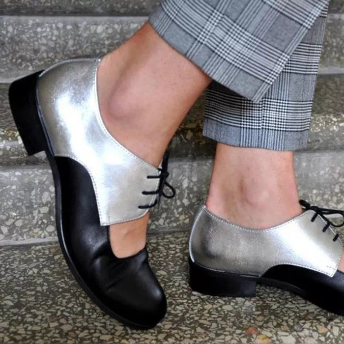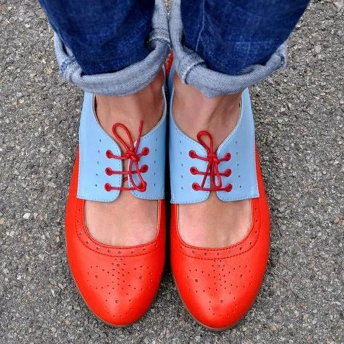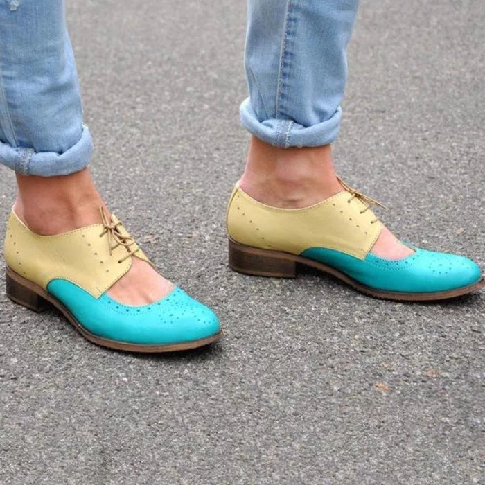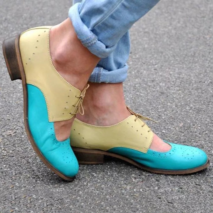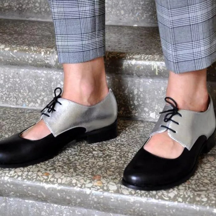 Womens Color Block Leather Cutout Oxfords Loafers Shoes