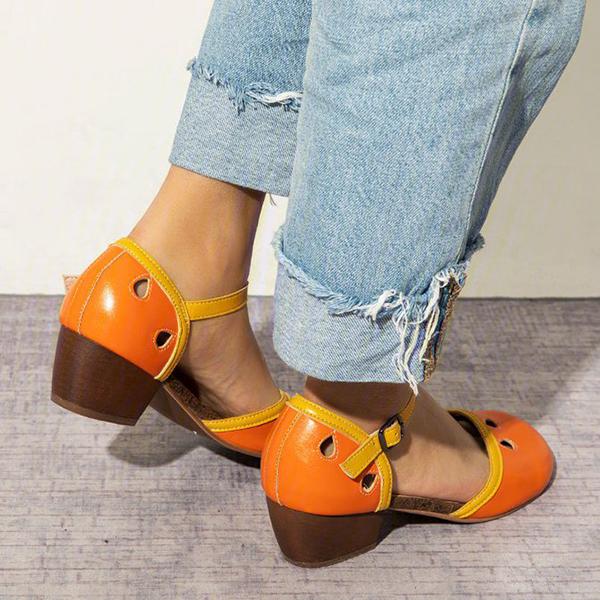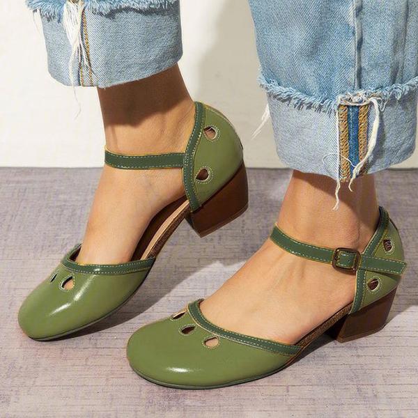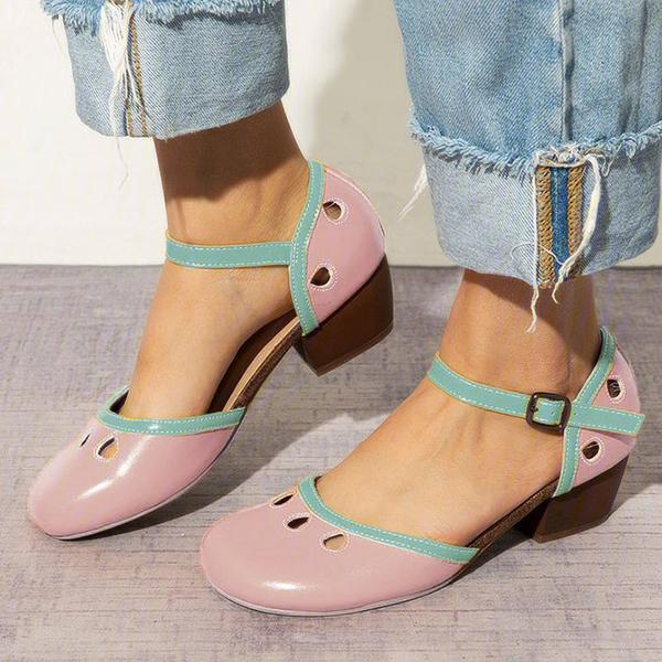 Women's Comfy Buckle Strap Pumps Low Heel Sandals