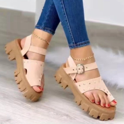 Women's Comfy Color Block Casual Platform Flip Flops