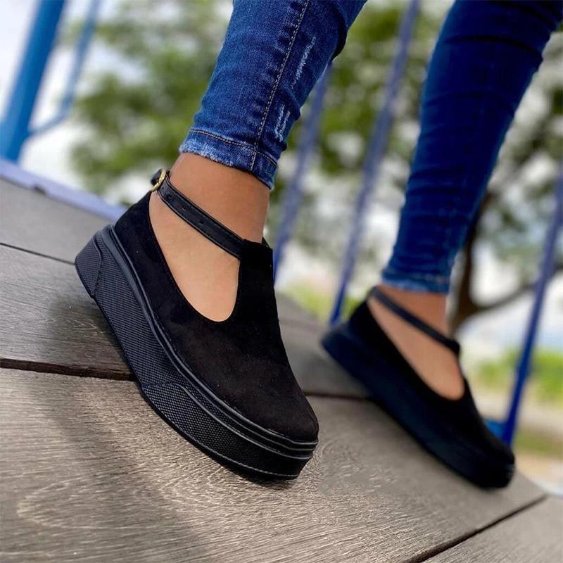 Women's Comfy Suede Platform Sandals With Buckles