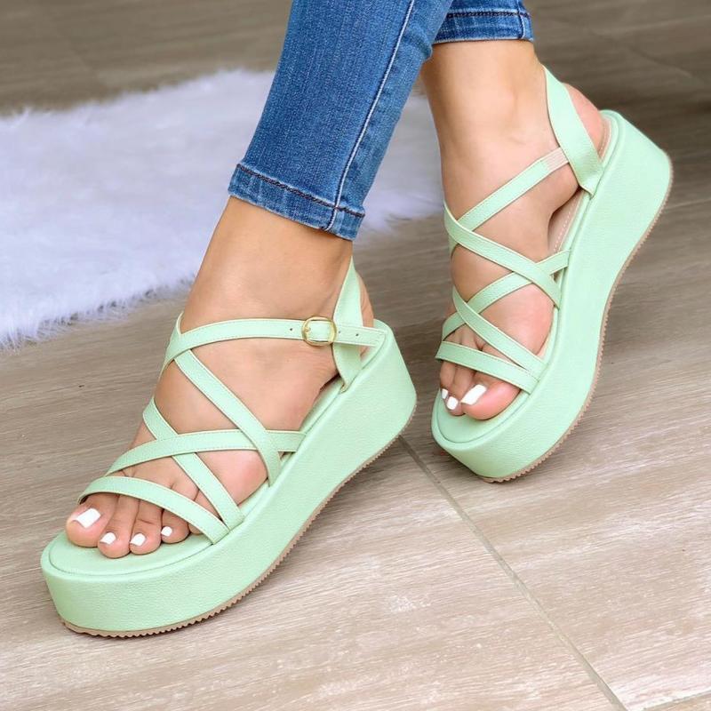 Women's Elegant Daily Pure Color Ajusting Buckle Platform Heel Sandals