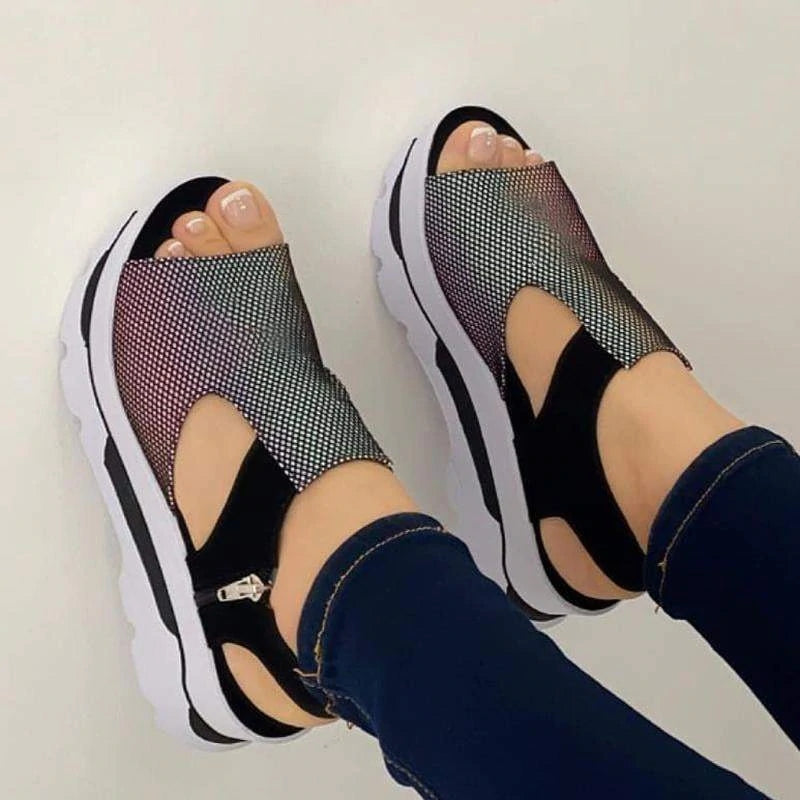 Women's Fashion Athletic Mesh Peep Toe Zipper Platform Heel Sandals