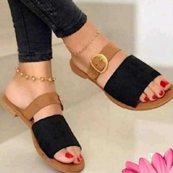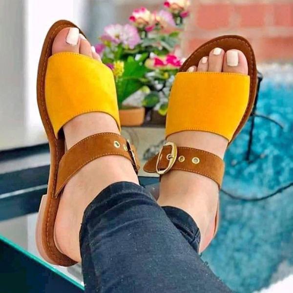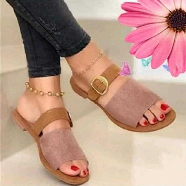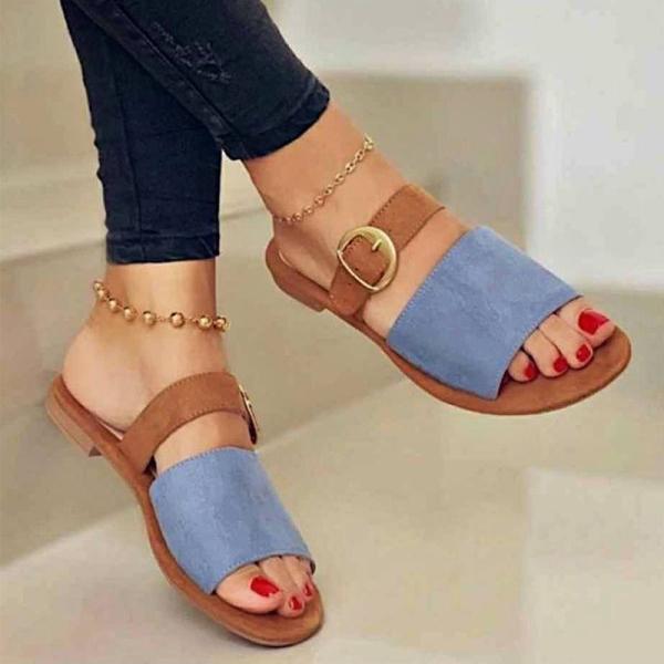 Womens Canvas Casual Flat Heel Buckle Sandals