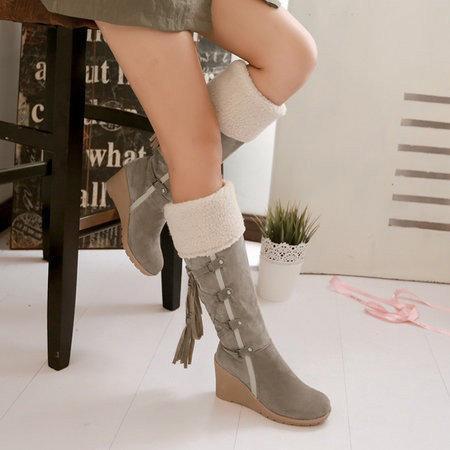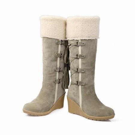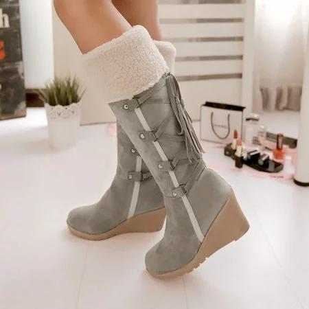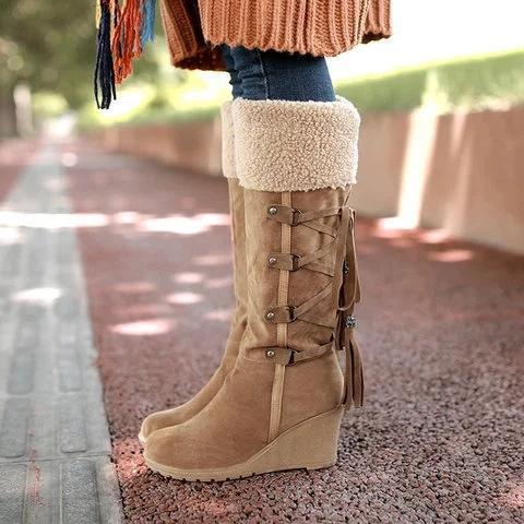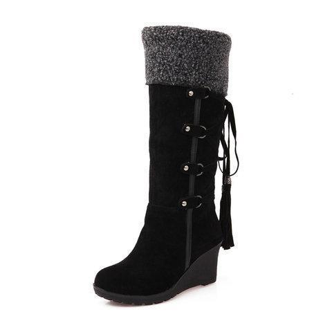 Womens Fashion Lace Round Toe Scrub High Heel Snow Boots