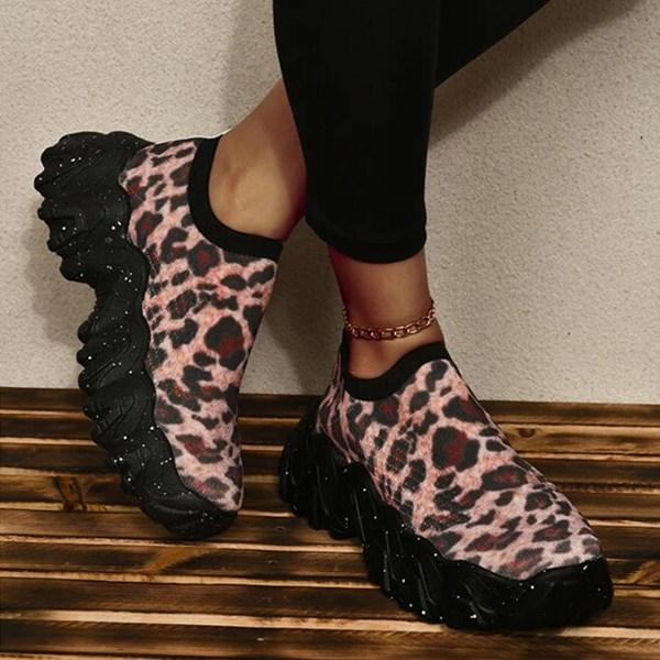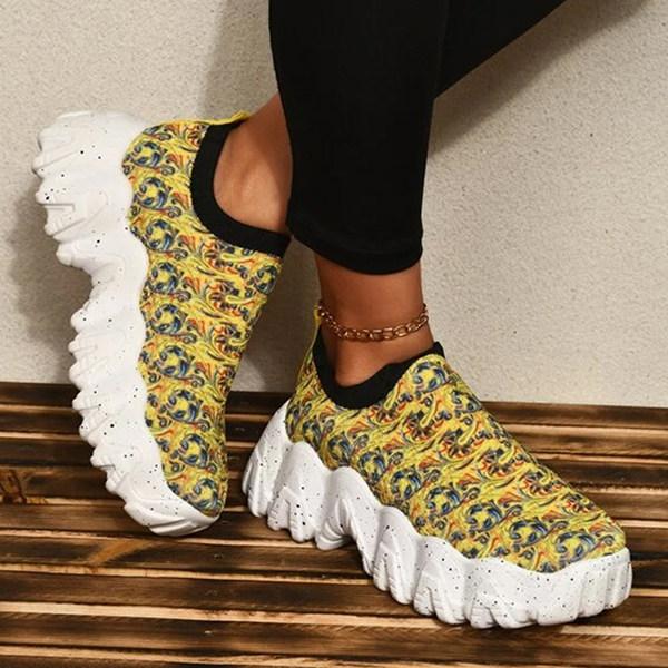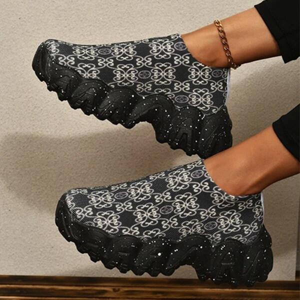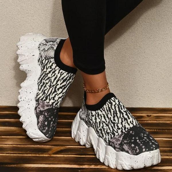 Women's Fashion Print Thick Sole Flying Knit Sneakers