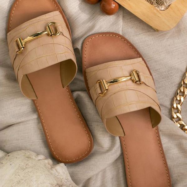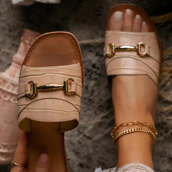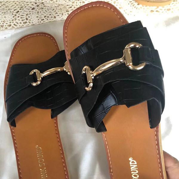 Women's Fashionable Decorative Buttoned-down Flat Slippers