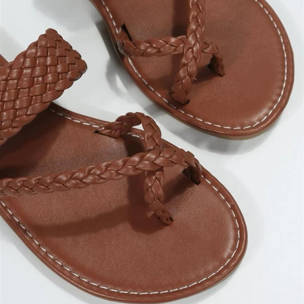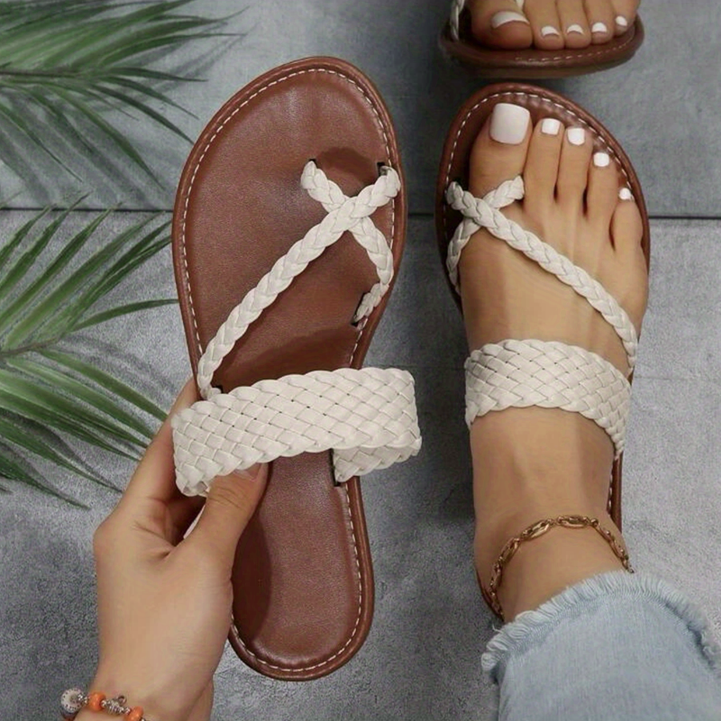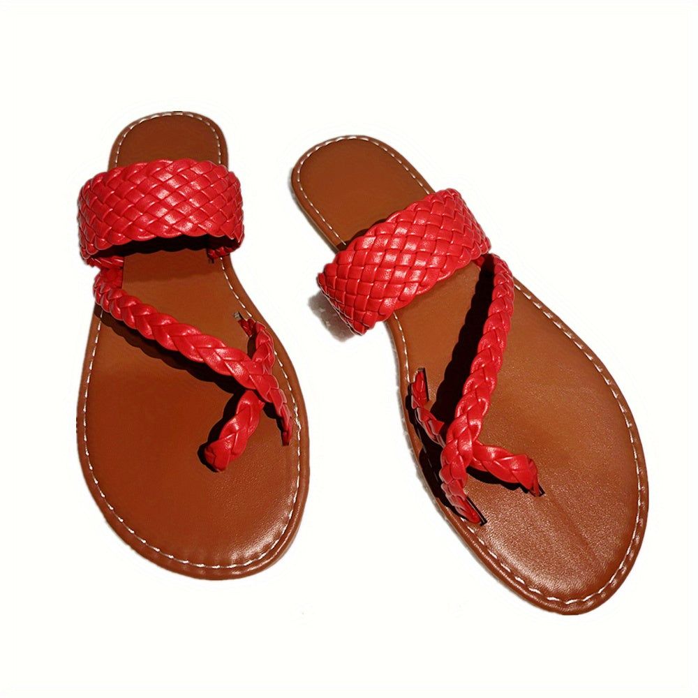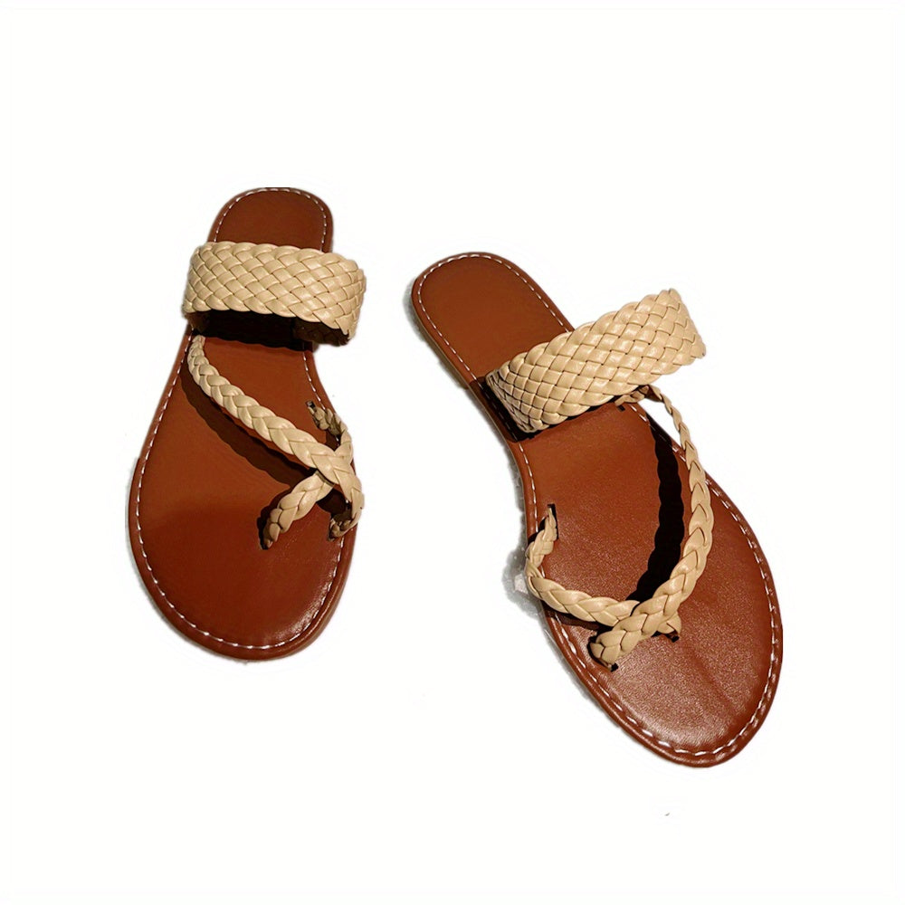 Women's Flat Slide Sandals, Weave Detail Thong Sandals, Braided Vamp Beach Slippers