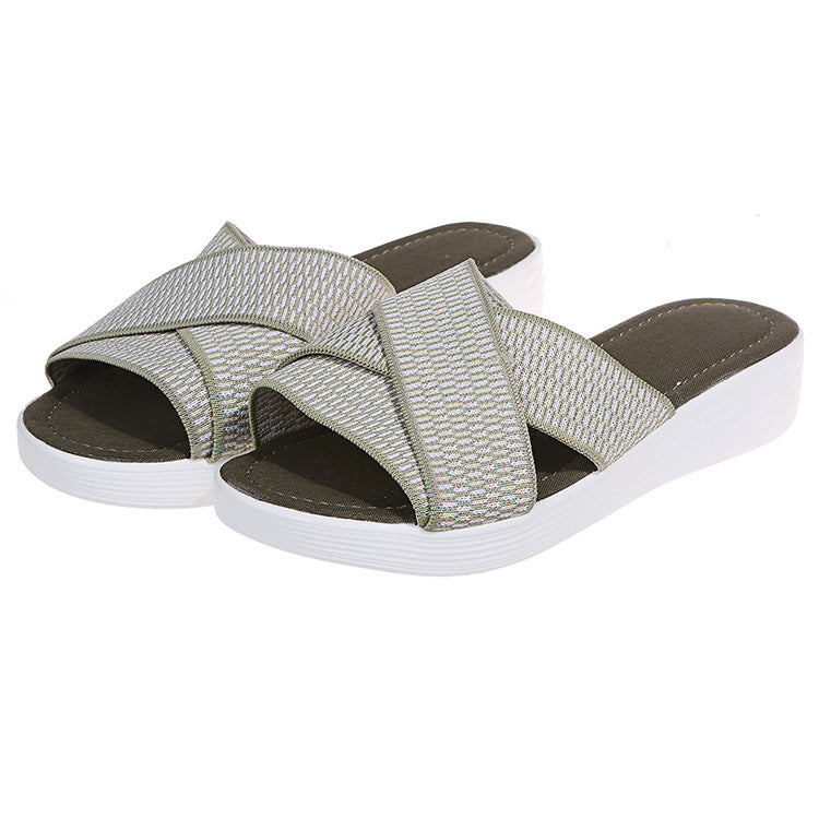 Women's Flat Wedge Fly Knit Cross Sandals