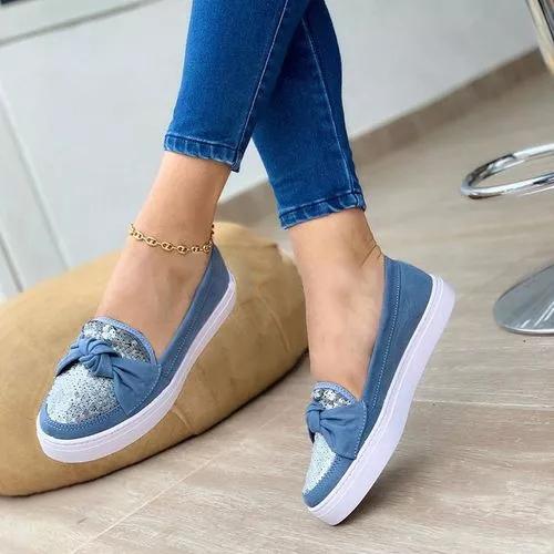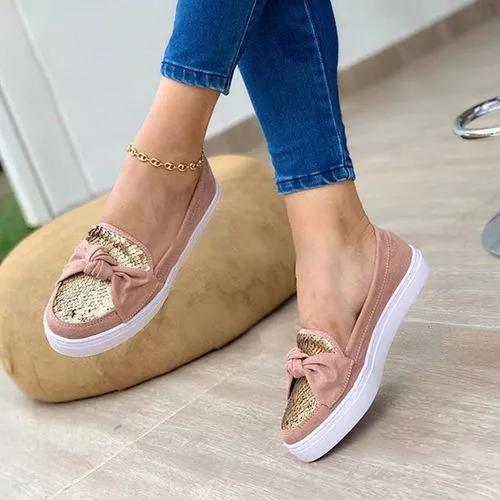 Women's Flats Leatherette Sparkling Glitter Flat Heel Loafers
