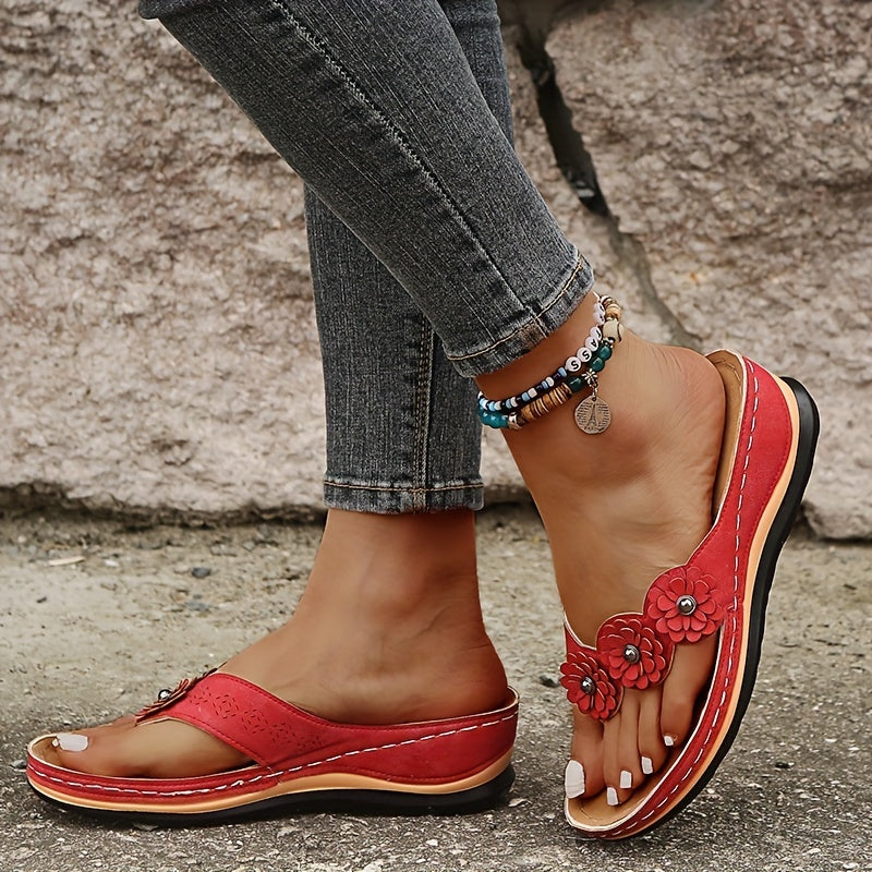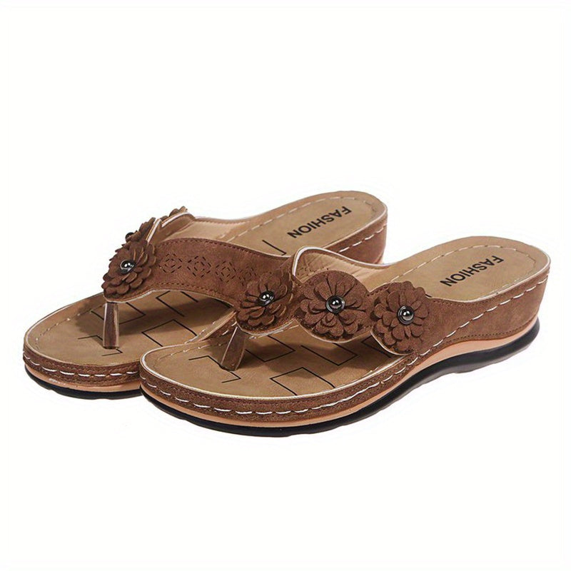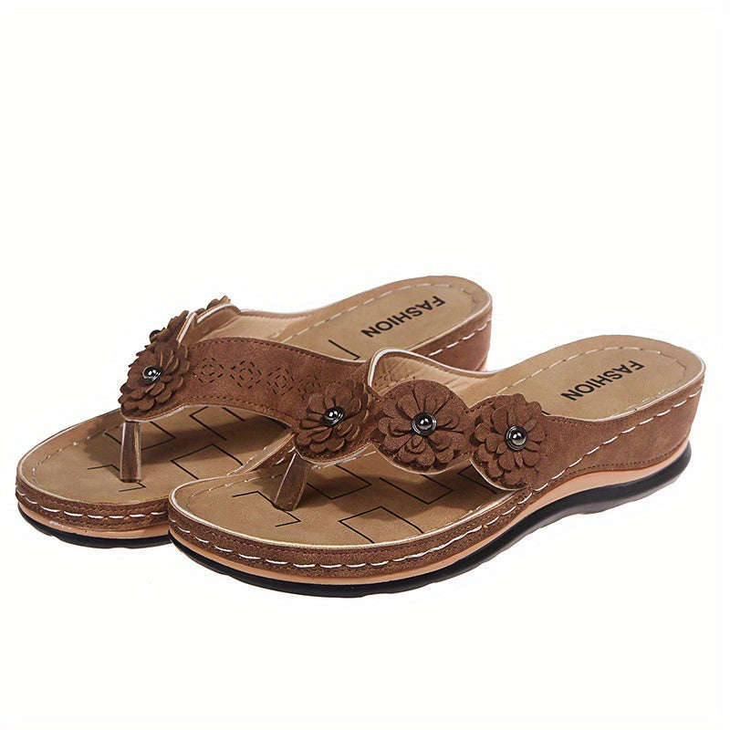 Women's Floral Flat Flip Flops, Solid Color Non-slip Gladiator Sandals, Casual Open Toe Slides Shoes