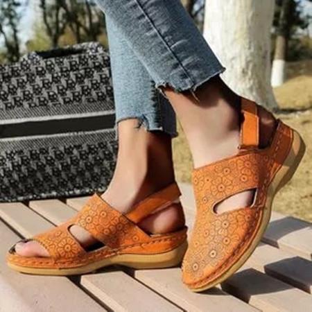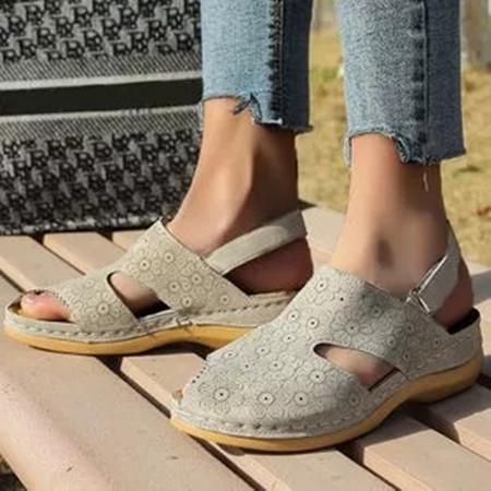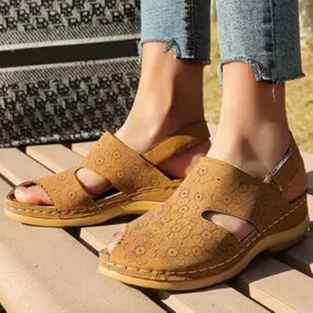 Women's Flower Slingbacks Nubuck Wedge Heel Sandals