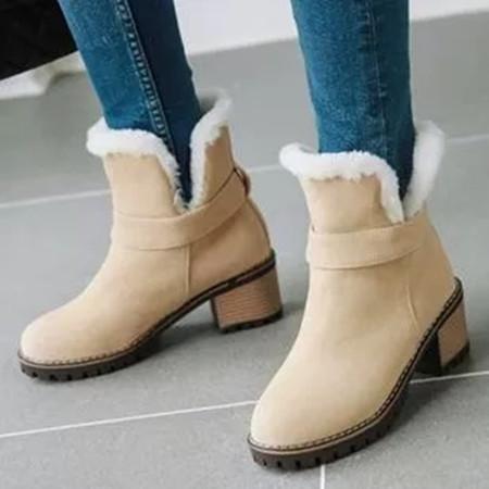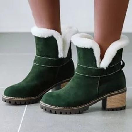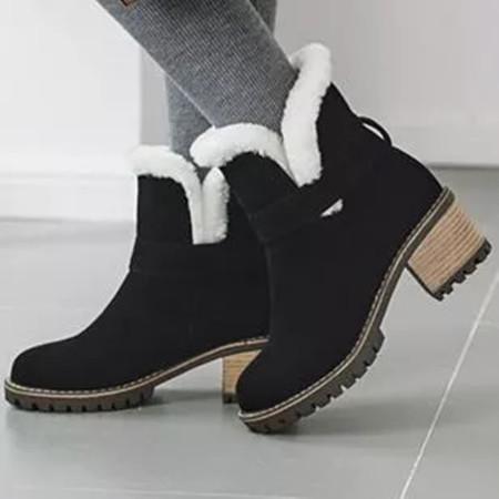 Women's Fur Ankle Boots Round Toe Heels Nubuck Chunky Heel Boots