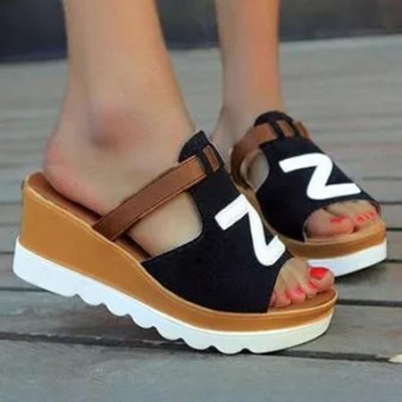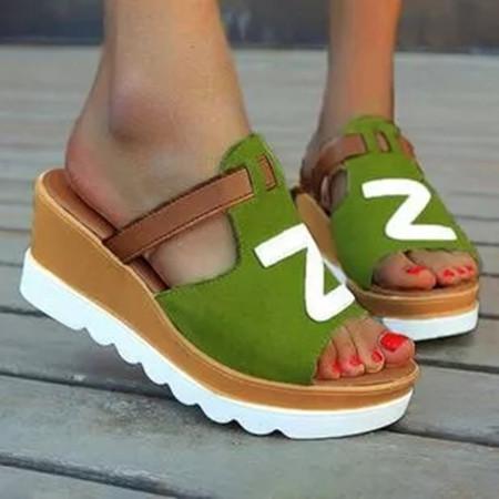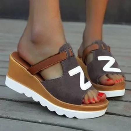 Women's Geometric Round Toe Nubuck Wedge Heel Slippers