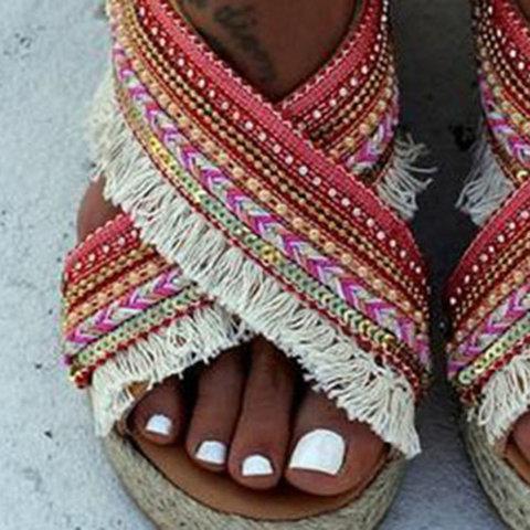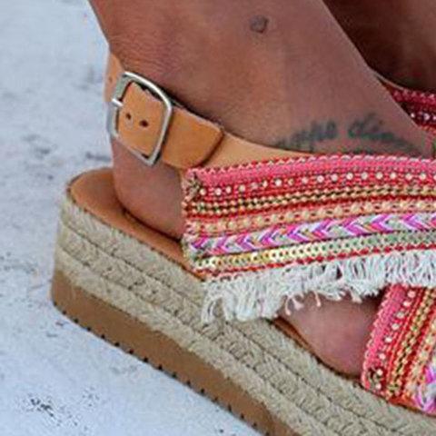 Women's Handmade Platform Peep Toe X-strap Sandals With Adjustable Buckle