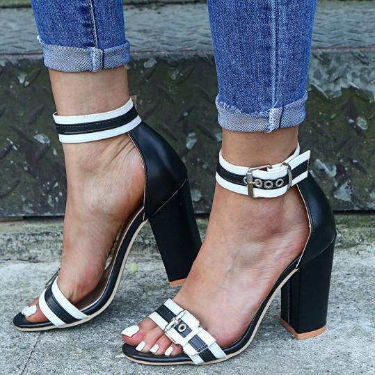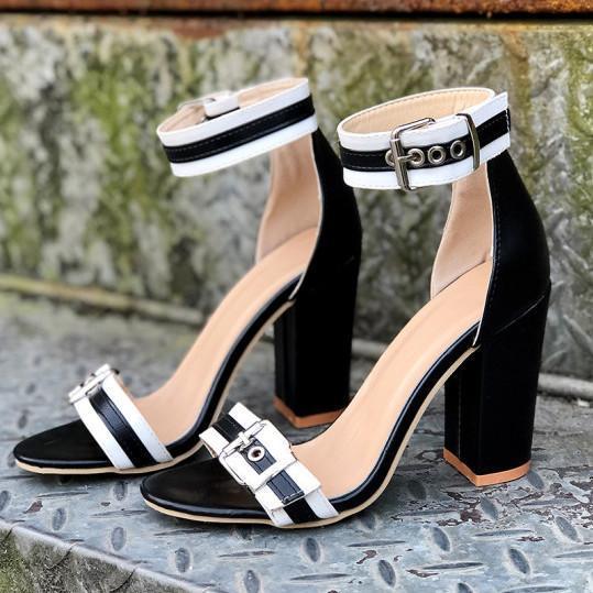 Women Chunky Heel Buckle Strap Pumps Sandals