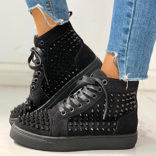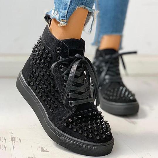 Women's hip-hop studded flat sneakers