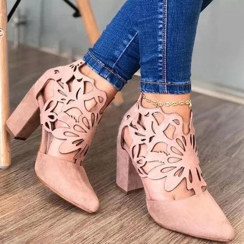 Women's Hollow-out Pointed Toe Heels Chunky Heel Sandals