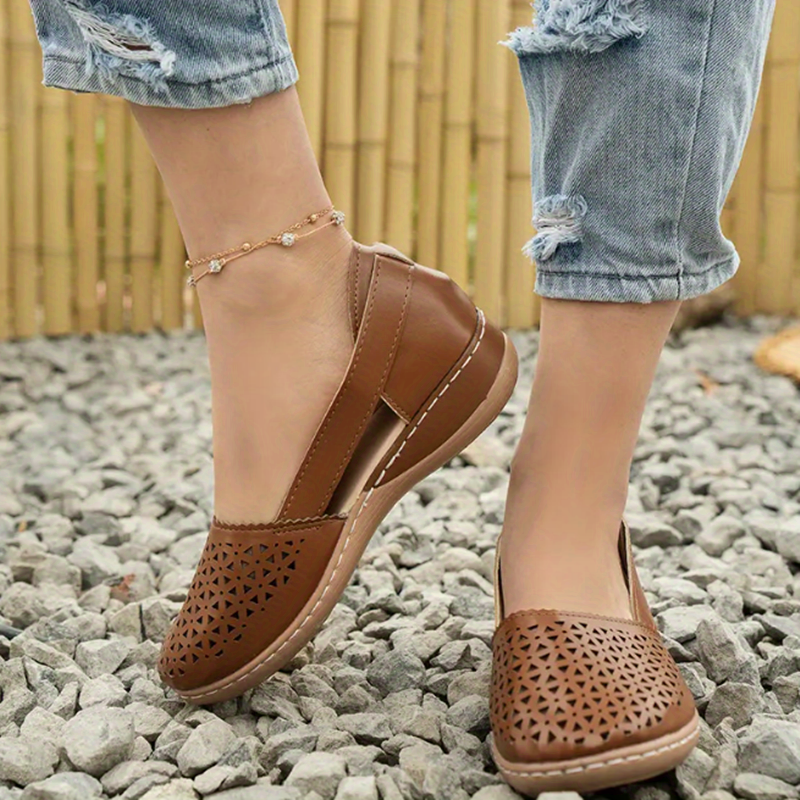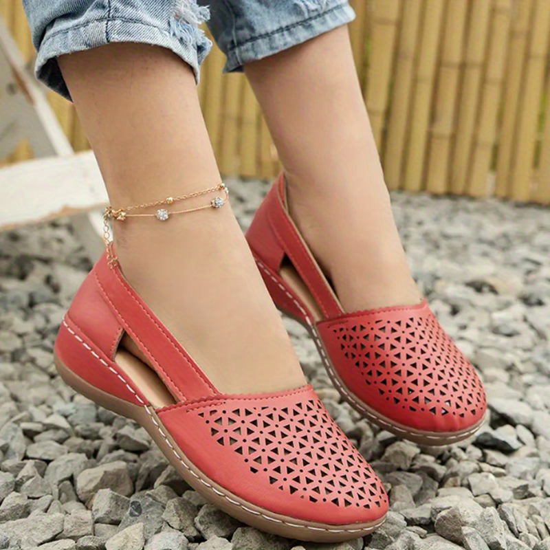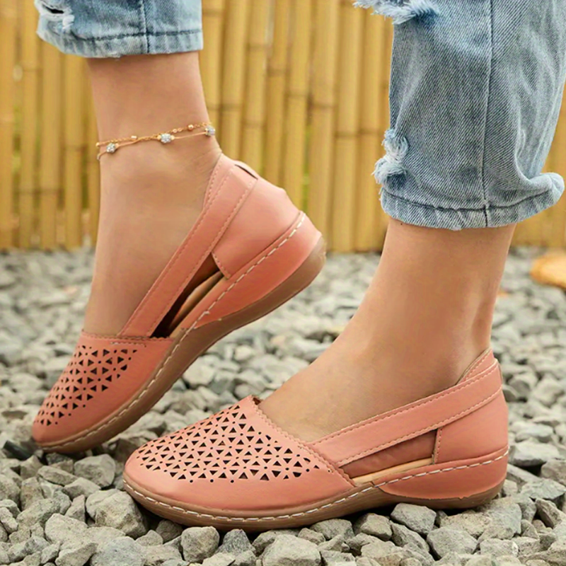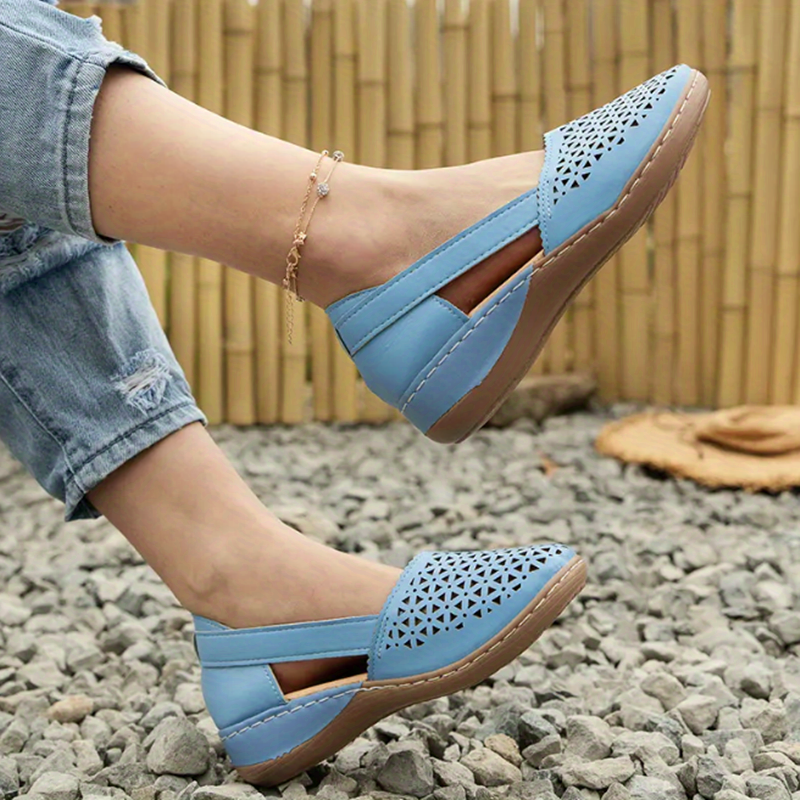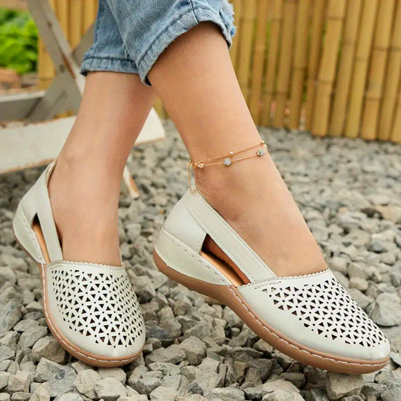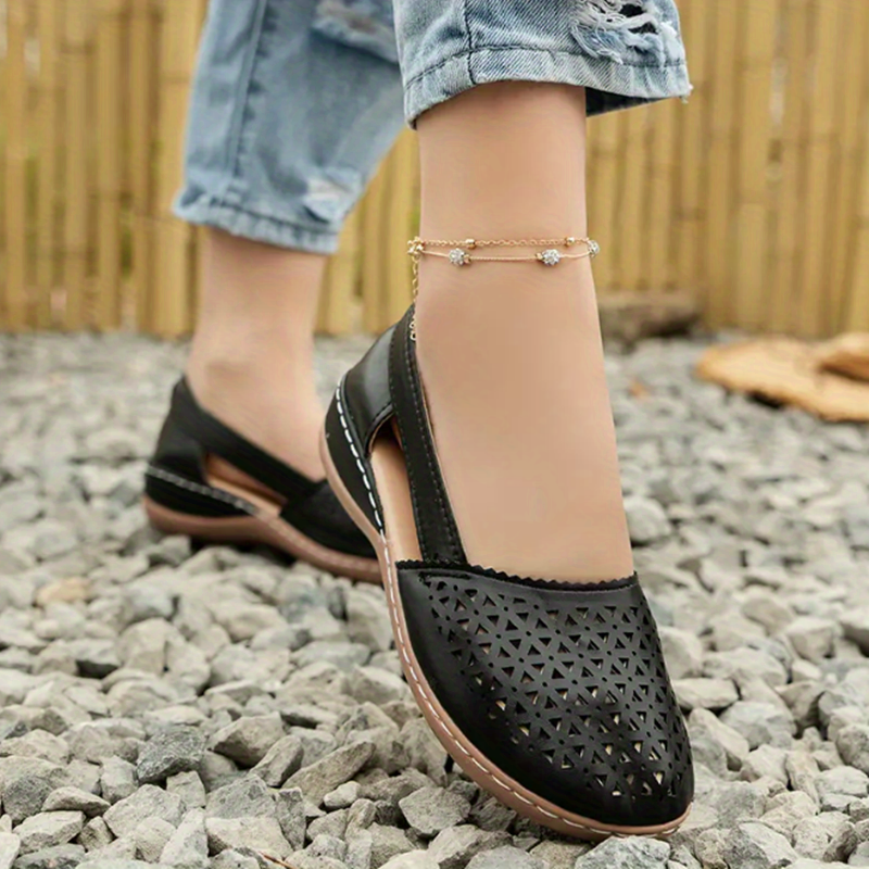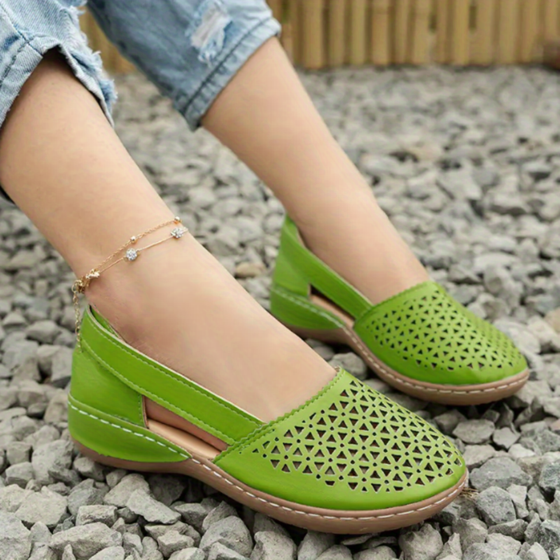 Women's Hollow Out Sandals, Round Closed Toe Breathable Solid Color Slip-on Sandals, St.Patrick's Day Shoes