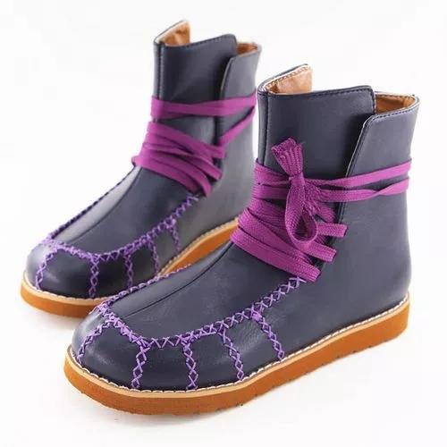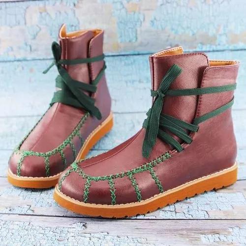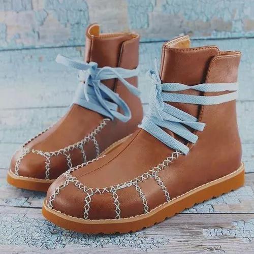 Women's Lace-up Ankle Boots Round Toe Flat Heel Boots