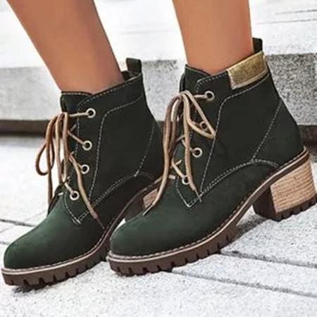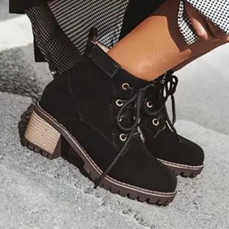 Women's Lace-up Ankle Boots Round Toe Heels Leatherette Chunky Heel Boots